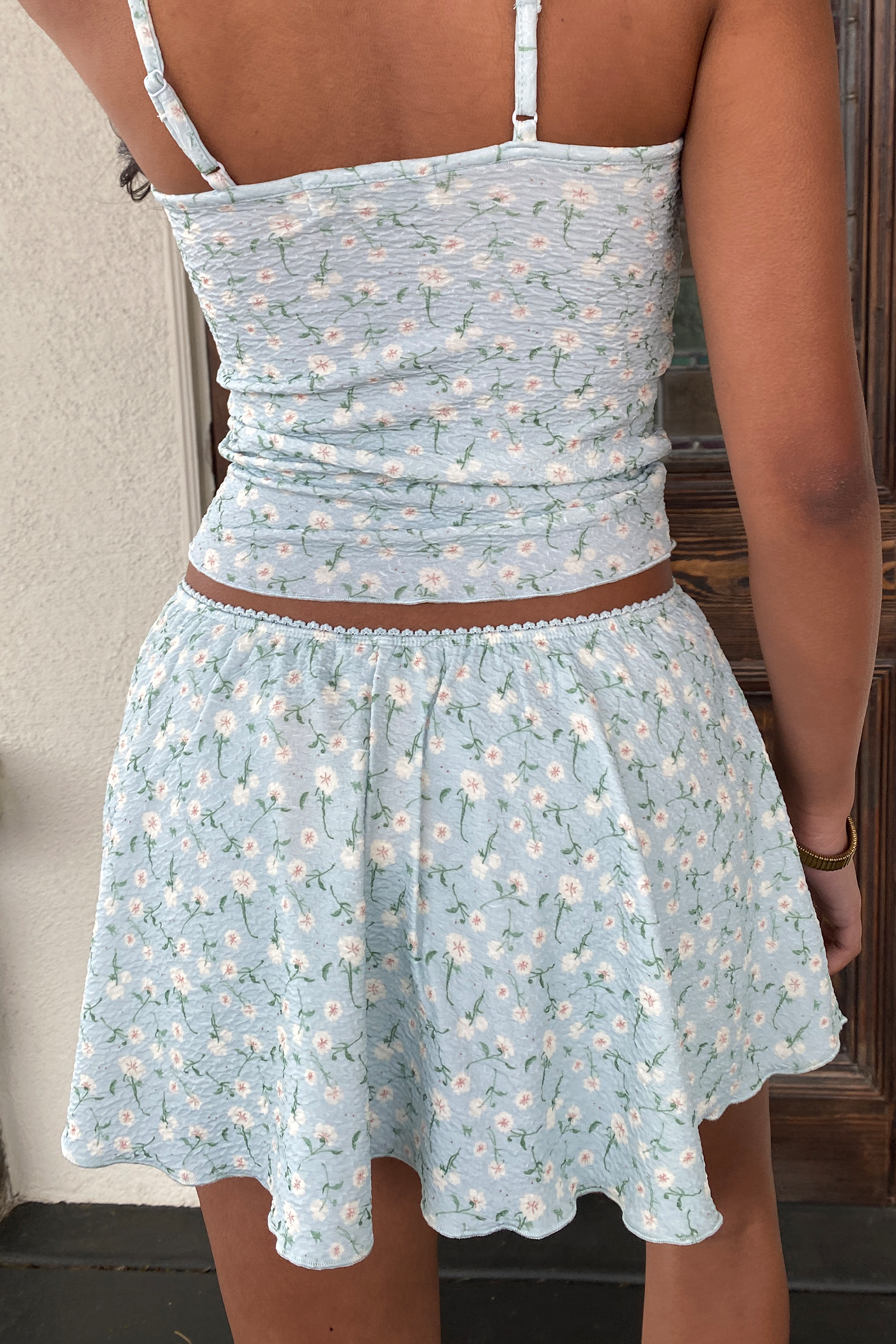 Summer Flowers Mini Skirt - Blue